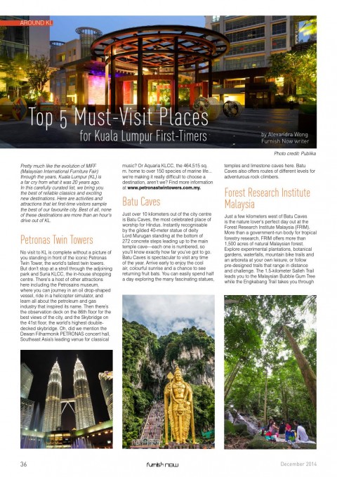 Furnish Now is the official magazine of the Malaysian International Furniture Fair (MIFF). Now in it’s 4th year, Furnish Now comes out twice a year, in June and December, following the MIFF show in March.