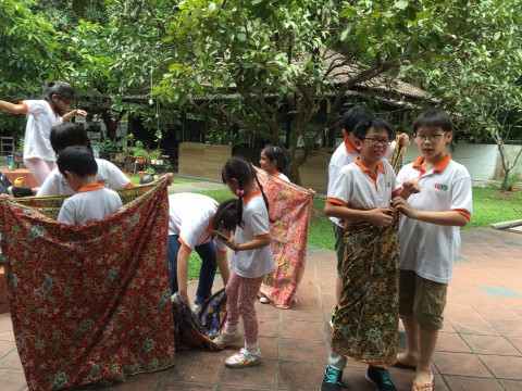 Malaysian Batik - myBatik Kuala Lumpur - myBatik workshop “how to wear” Batik Sarong workshop by Emilia, for students from THE SEQUIOA ACEDEMY home school August 5, 2016