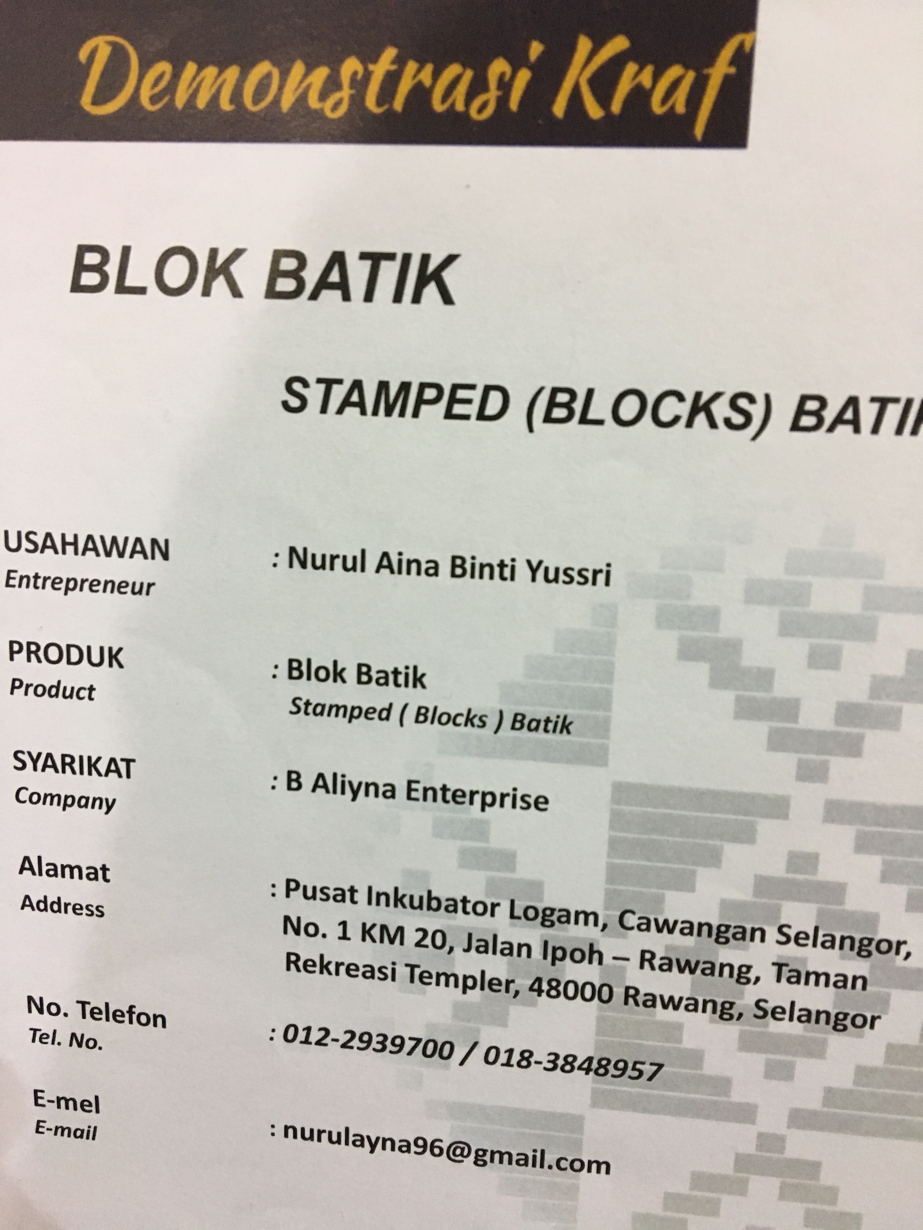 Emilia Tan is the owner and the founder of myBatik Kuala Lumpur, a batik company which provides all types of batik incorporated services to the country and community such as batik art activities for corporate team building and personal batik workshops. Her company exposes batik to a wider audience and can be regarded as a guardian of the unique Malaysian heritage.