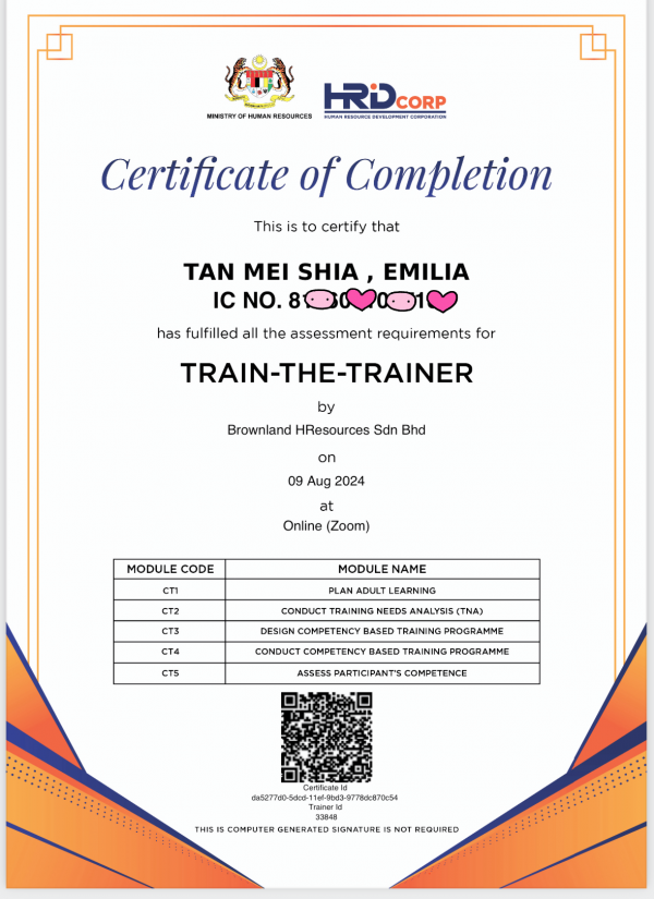 23.08.24 / Award & Achievement, Batik Artist Emilia Tan, Corporate Team Building / Author: admin / Comments Off on Malaysia Goverment HRDC TTT certify trainer in Batik! 2024 the biggest achievement! 100% claimable Batik Course for corporate & Malaysia local SME ! for more information please whatapps us +60122579775 thank you